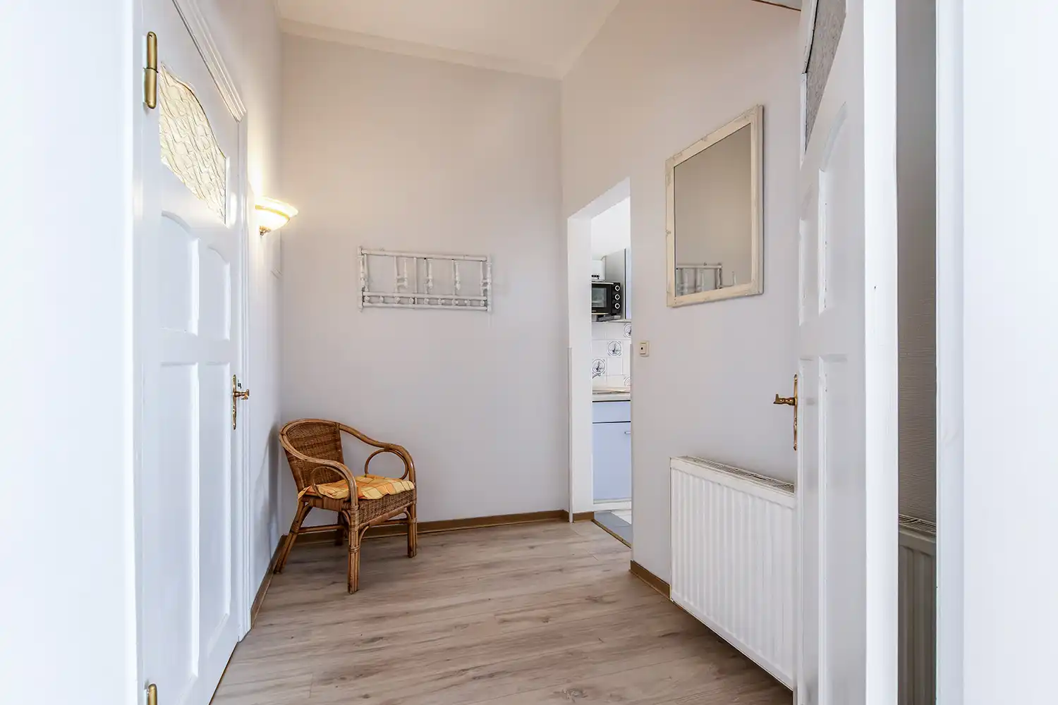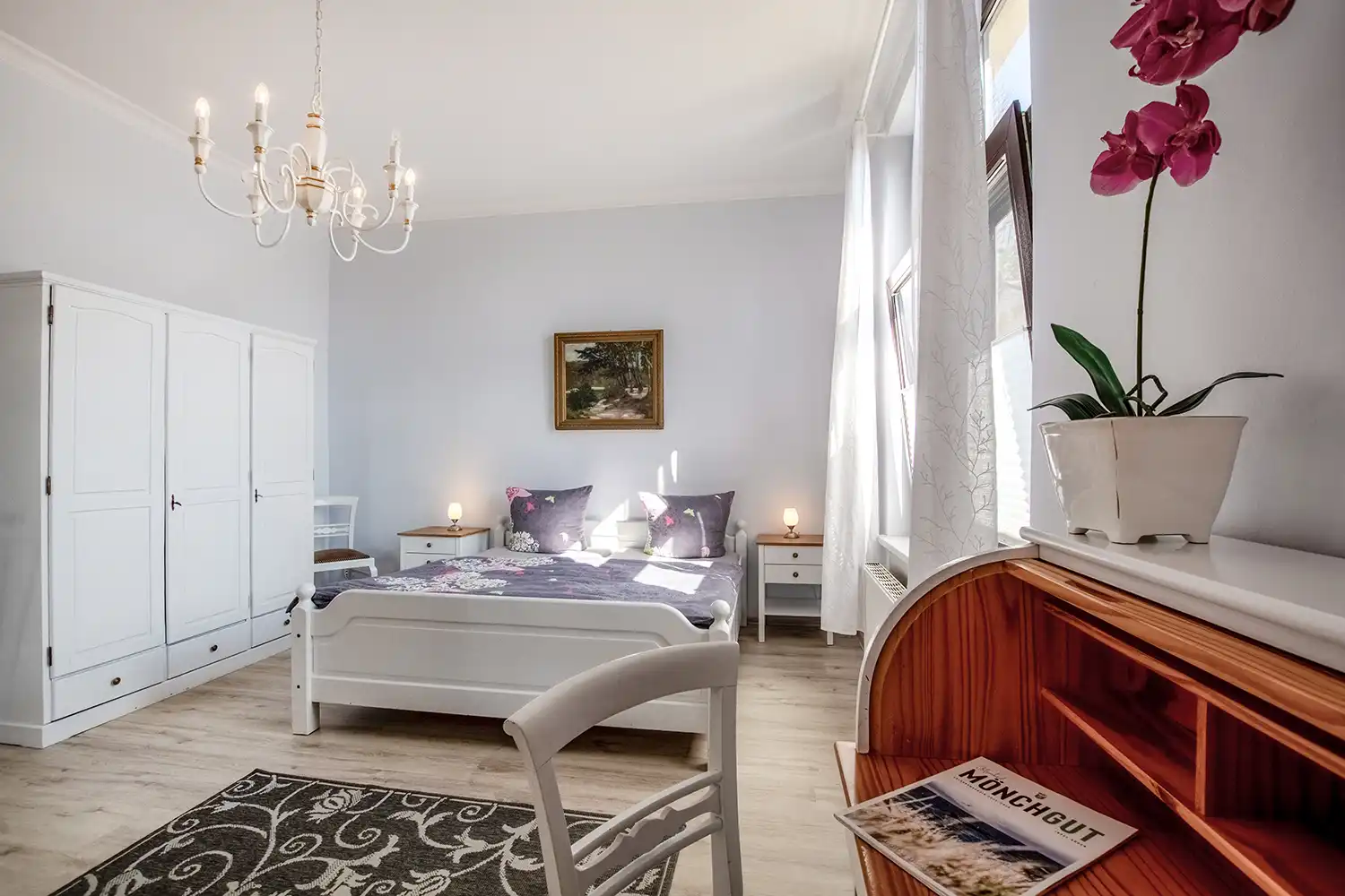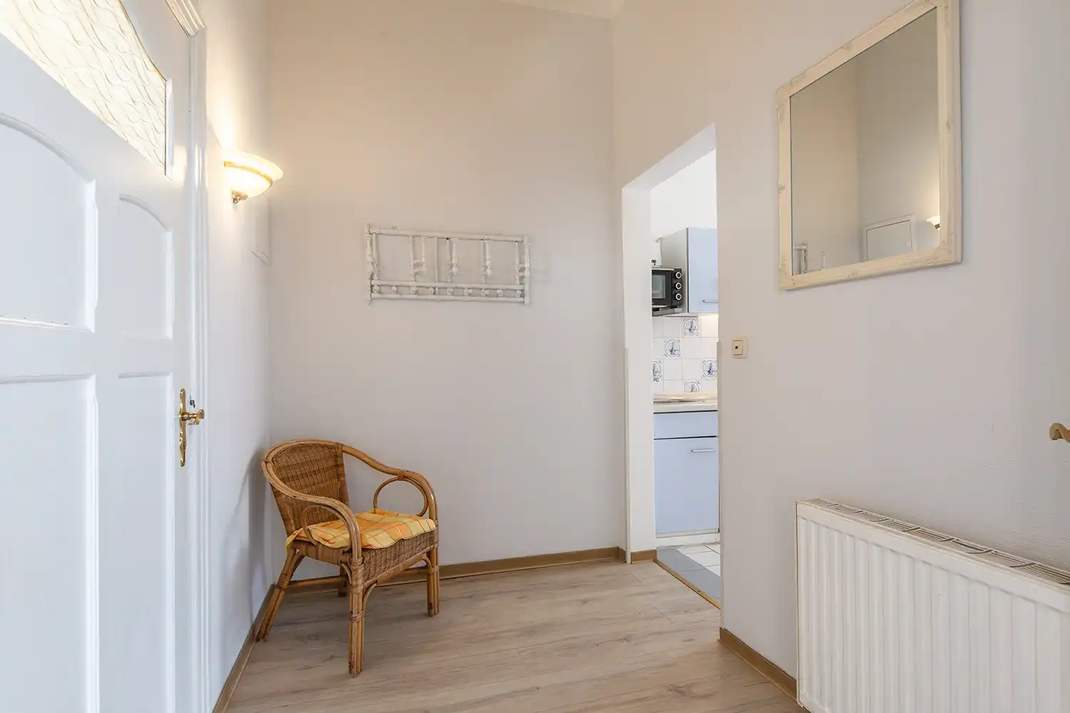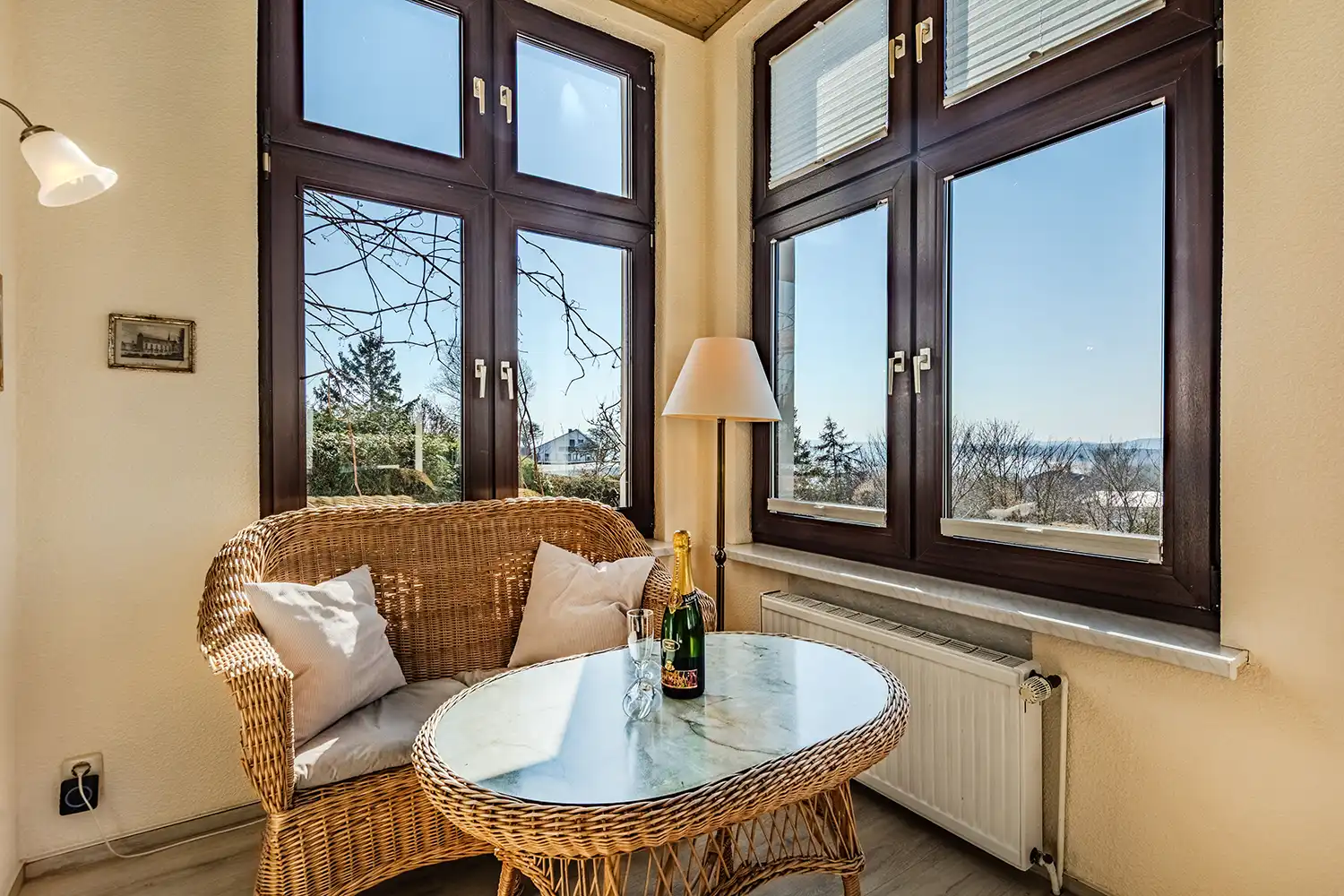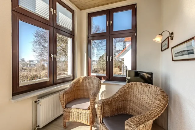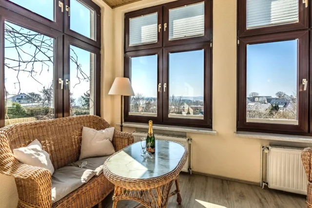- Verandazimmer mit Korbmöbel, Ostsee- und Mönchgutblick
