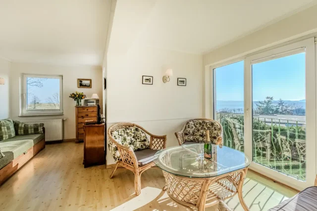 Wunderschöne Ferienwohnung (45 qm) mit Blick über die Halbinsel Mönchgut Mindestaufenthalt: 3 Nächte | In der Hauptsaison 8 Nächte: Anreise: Samstags ab 16:00 - 18:00 Uhr | Sonntags bis Abreise: bis 10:00 Uhr