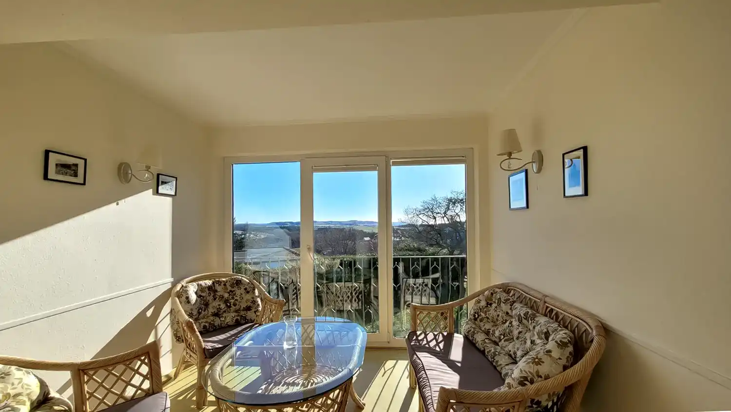 Die Ferienwohnung 3 hat einen traumhaften Meerblick und einen Balkon.